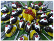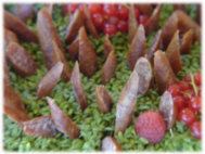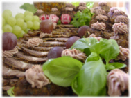 Die Produktpalette der Buffet/Meneu-Essen bei Sonderveranstaltungen wird vorrangig gestaltet mit u.a. Harzer Rotvieh und Wildbret sowie Erzeugnissen eines lokalen Fischereibetriebes. Zudem wird Brot aus einer kleinen Land-Bäckerei angeboten. Kuchen wird vor Ort frisch gebacken. |